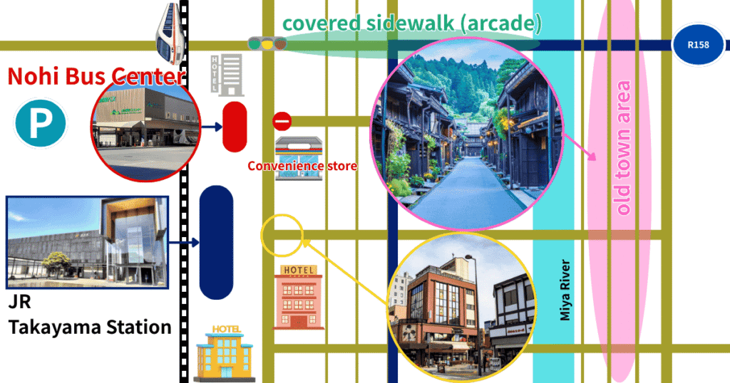 • Arrival Point: Takayama Nohi Bus Center (right next to JR Takayama Station)